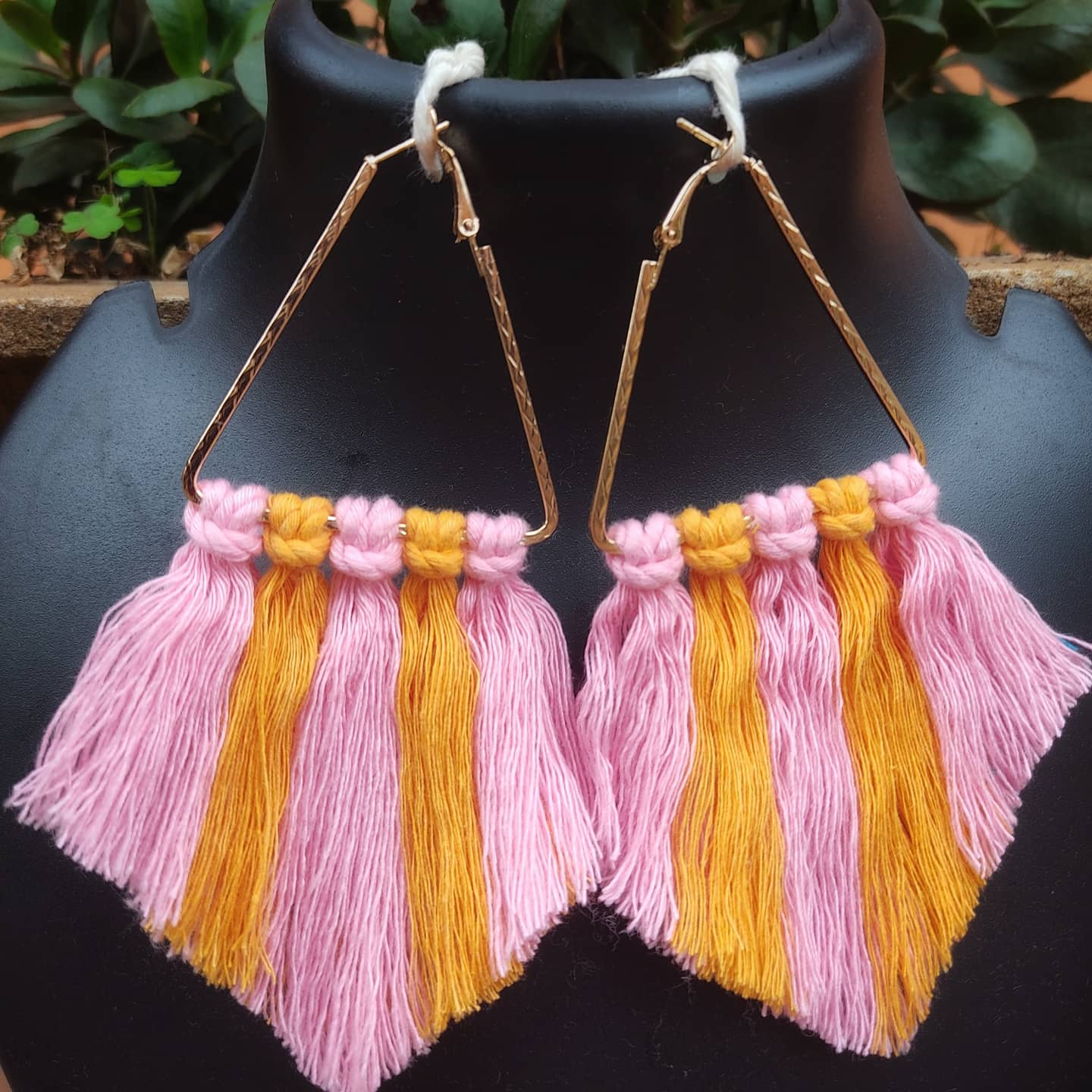 The pink & orange macrame earrings are hand crafted by Riyanka. They are perfect to match your western or ethnic look. The pink & orange macrame earrings are made using the knotting technique. The cotton threads are used to make these beautiful earrings. Since they are made with cotton, they are very light to wear.