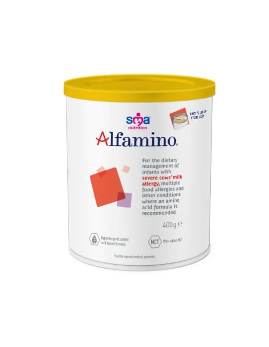 For the dietary management of severe/complex symptoms of cow's milk protein allergy (CMA) and/or multiple food protein allergies, SMA Alfamino is an amino acid-based, non-allergenic newborn formula. SMA Alfamino can also be used in the nutritional management of newborns who do not improve after consuming infant formula that has been extensively hydrolyzed.